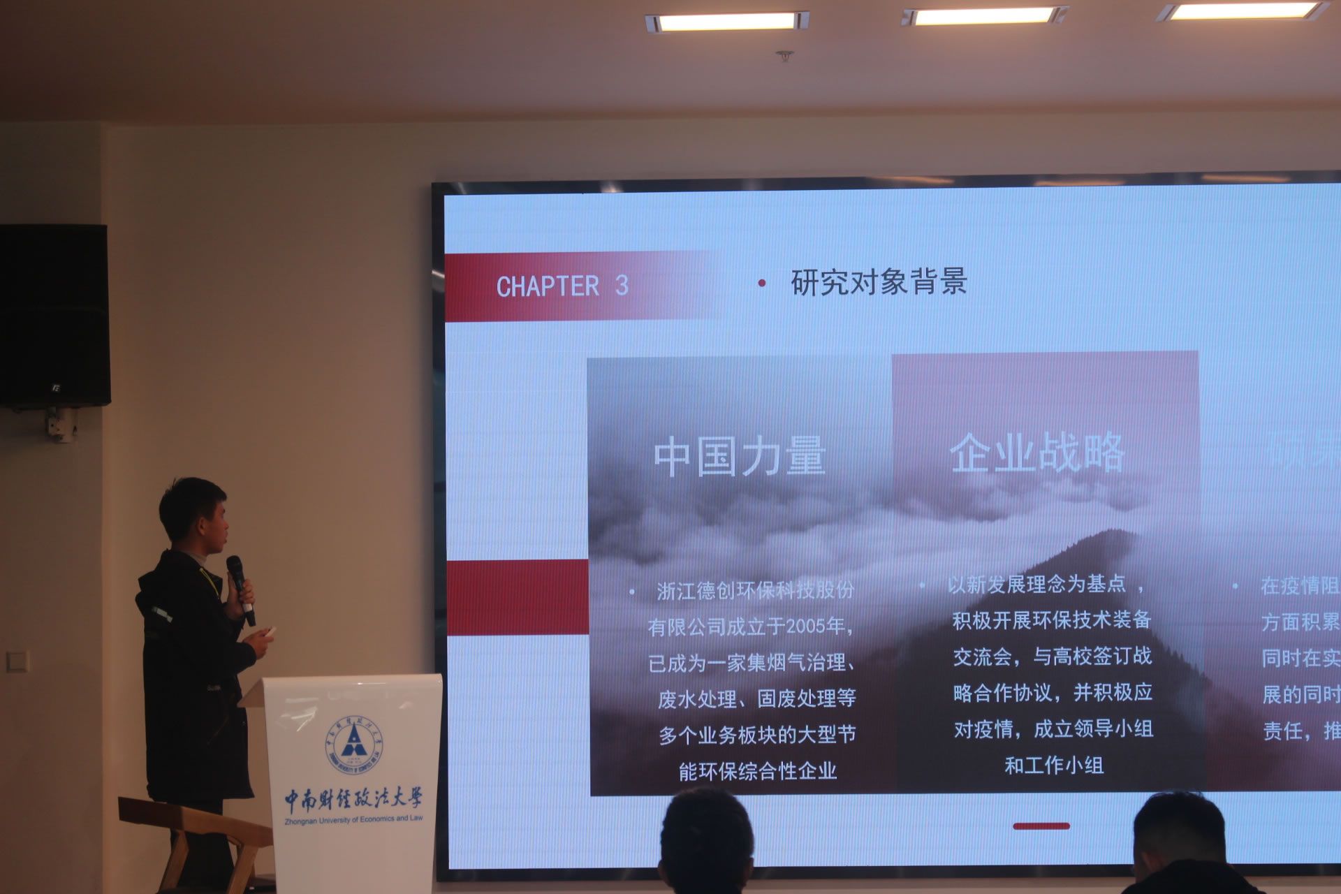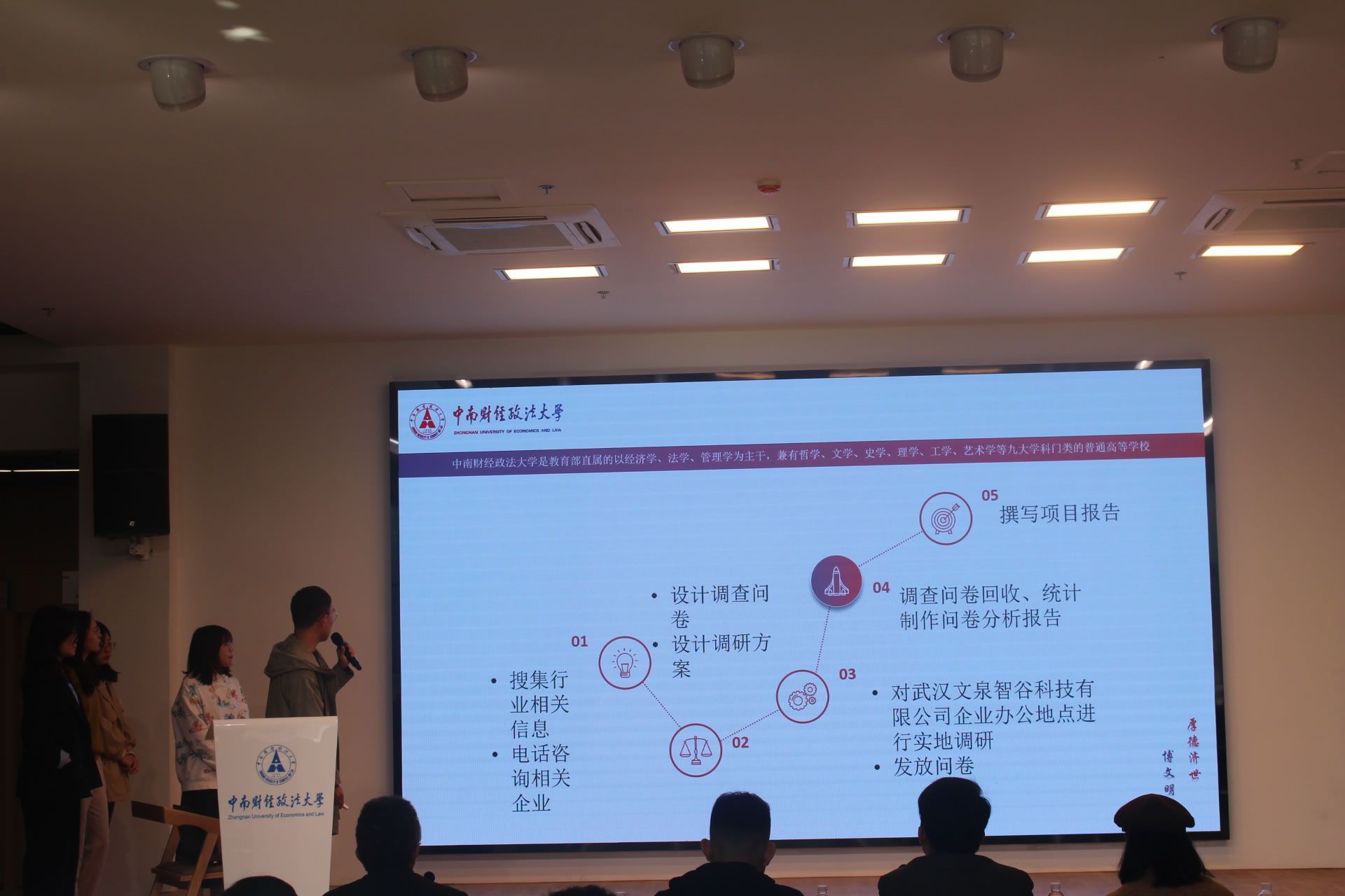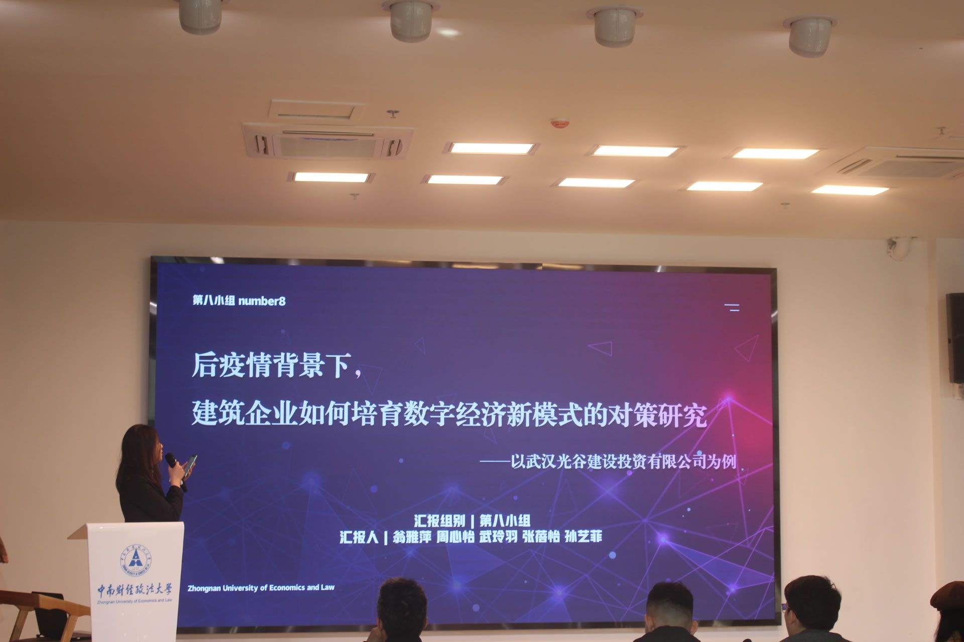 6号小组聚焦于“芯片零件”的进口问题,以三家科技企业为调研对象,了解中小科技企业生产销售所受技术限制影响状况、面对的法律和财务风险及相关应对措施,提出了针对中小型科技企业的经营及政策建议。7号小组以 “羽翼鸟”育人模型、“成长轨”就业服务系统为核心优势,深入探究 “产教融合”的实践概念,基于大数据精准服务培训技能共享,提出要打造全产业链人力资源公司。8号小组运用PSR模型,分析新冠肺炎疫情事件对武汉光谷建设投资有限公司的影响,提出智能化数据一体式管理,加速建筑企业数字化转型的智能工地信息平台。9号小组引入“乐活经济”的概念,深入探究了互联网+养老行业的发展现状与未来趋势,通过对杭州每次科技有限公司进行实证研究形成初步评估体系。10号小组围绕后疫情时代烽火通信科技股份有限公司在资源分配、员工待遇、员工反映三个层面的现状与问题,展示该公司所采取的解决方案。