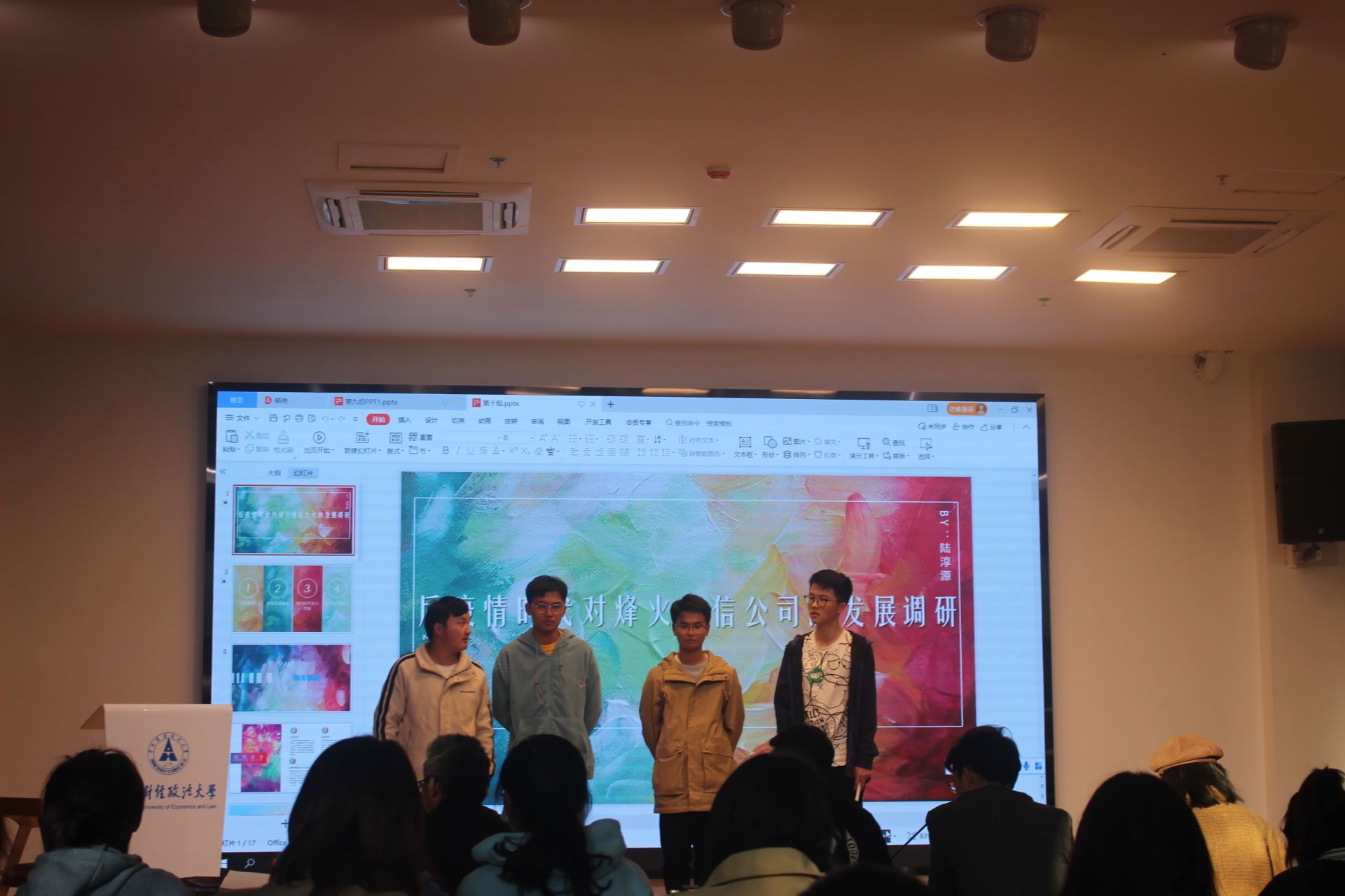 (通讯员:曾祥麟 李晋阳 许志蕴 查嘉琳 )11月14日下午,在我校新落成的大学生素质教育中心,举办了“读懂中国•永远跟党走”2021年暑期社会实践专项活动“公司调研与创建”课程展示会。参与此次展示的有来自工商、财税、金融、刑司、外国语、会计以及信息与安全工程等7个学院的10个课程小组,课程指导老师赵琛徽教授、湖北荆楚创客咖啡发展有限公司总监龚雄军先生以及多次斩获国家级大奖的刘昊天先生、许梦丹女士一起作为评委对各课程组的成果进行了指导和点评。