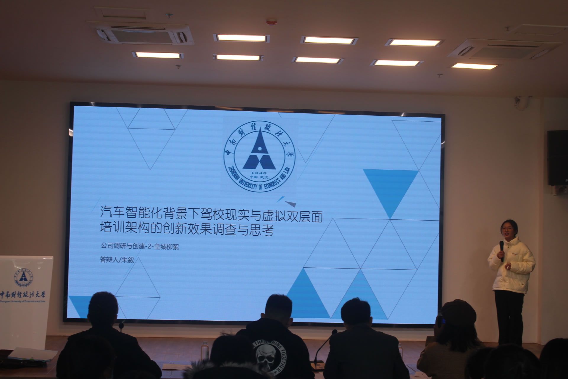 各课程小组依次进行了汇报:1号课程组基于大学生兼职过程中面临的信息不对称问题,进行了市场、法律等方面的调查与分析,同时提出建立在校生兼职信息中介模拟公司的设想。2号课程组以“伯乐学车”为调查对象,从VR领域的拓展与新能源汽车市场的扩大出发,深入研究在汽车智能化背景下,驾校现实与虚拟双层面培训这一架构的创新效果。3号课程组针对常态化疫情防控的现状,重点对中小企业人力资源管理困境进行了探究与调研,提出了加强软硬件设施建设、推动企业人力资源管理信息化等建议。4号课程组聚焦于人口老龄化背景下的“互联网+”银发经济,基于老年产业市场准入门槛低、服务质量偏低等现存困境,提出开发久遇APP智慧养老的构想。5号课程组基于双循环格局与创新绿色发展理念,调研浙江德创环保科技股份有限公司,针对性地分析提出了“环保企业+创新”模式。