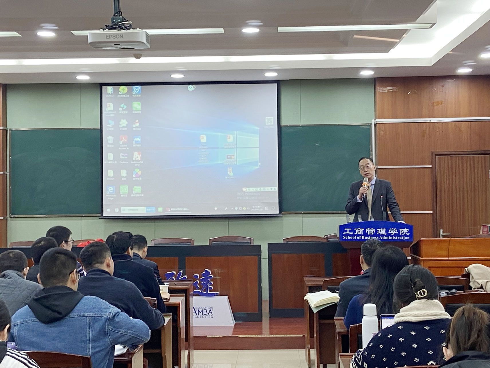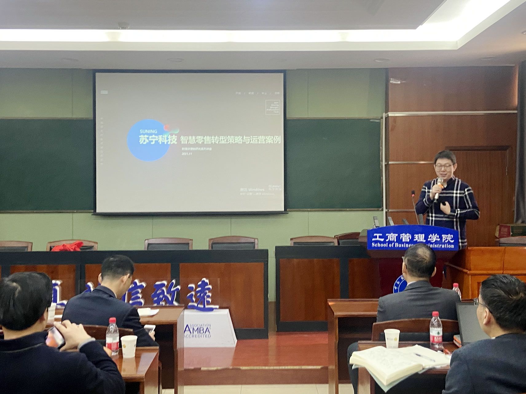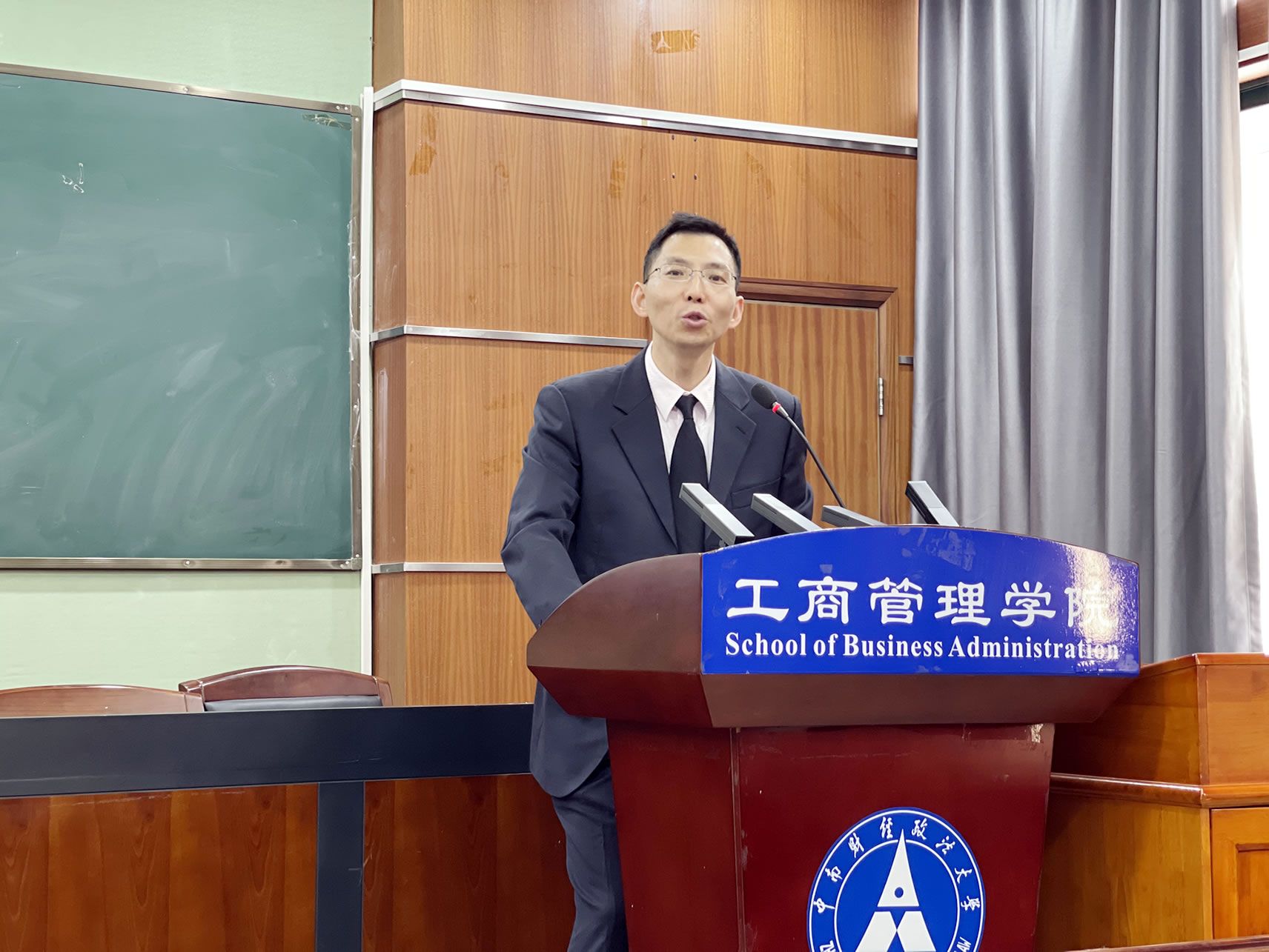 孙洪庆教授对窦文宇教授的分享进行了总结发言,给予了“窦老师是引路人”的极高评价,用“潮、新、巧”三个关键词对新消费策略进行了独特的解读,引起场下师生们的阵阵掌声。