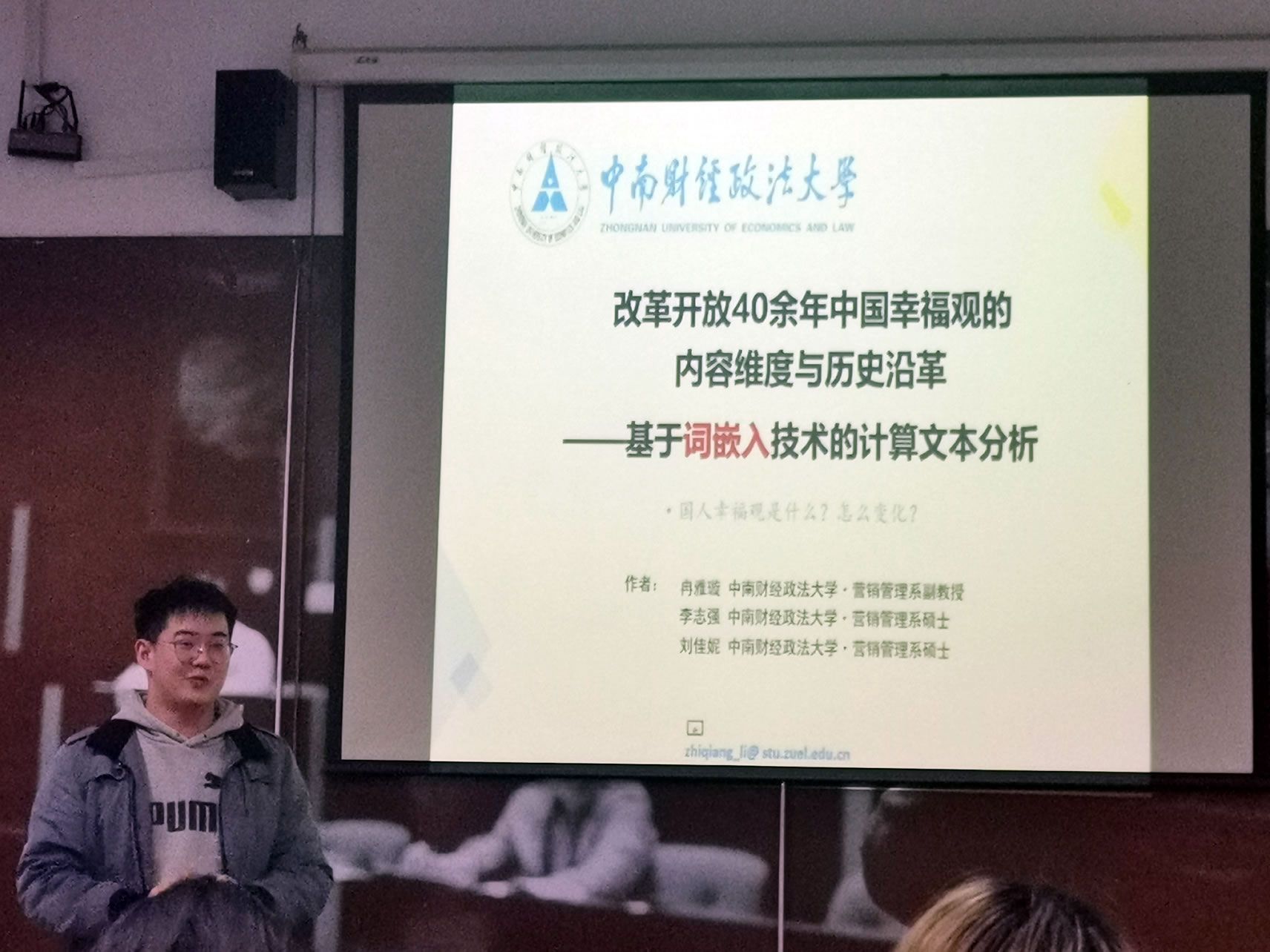 of Unattractive Produce》以及《中国社会背景下人民幸福观的内容维度与历史沿革—基于词嵌入技术的文本分析方法》进行了研究思路、研究设计、研究内容和研究意义等方面的介绍。