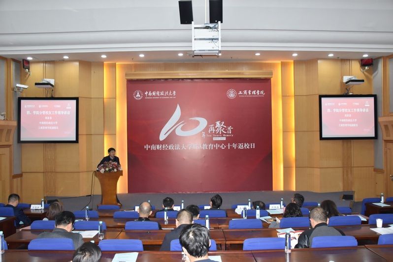 武汉当思源科技发展有限公司董事长佘有缘校友用充满诗意的我发言,对比了师生、学院十年来的发展变化,并表示万分荣幸十年前做出来到中南大MBA学习的决定,感谢老师们的细心教导,使得自己在知识、思想上重新得到了启发,引起了在场的校友们的感情共鸣。