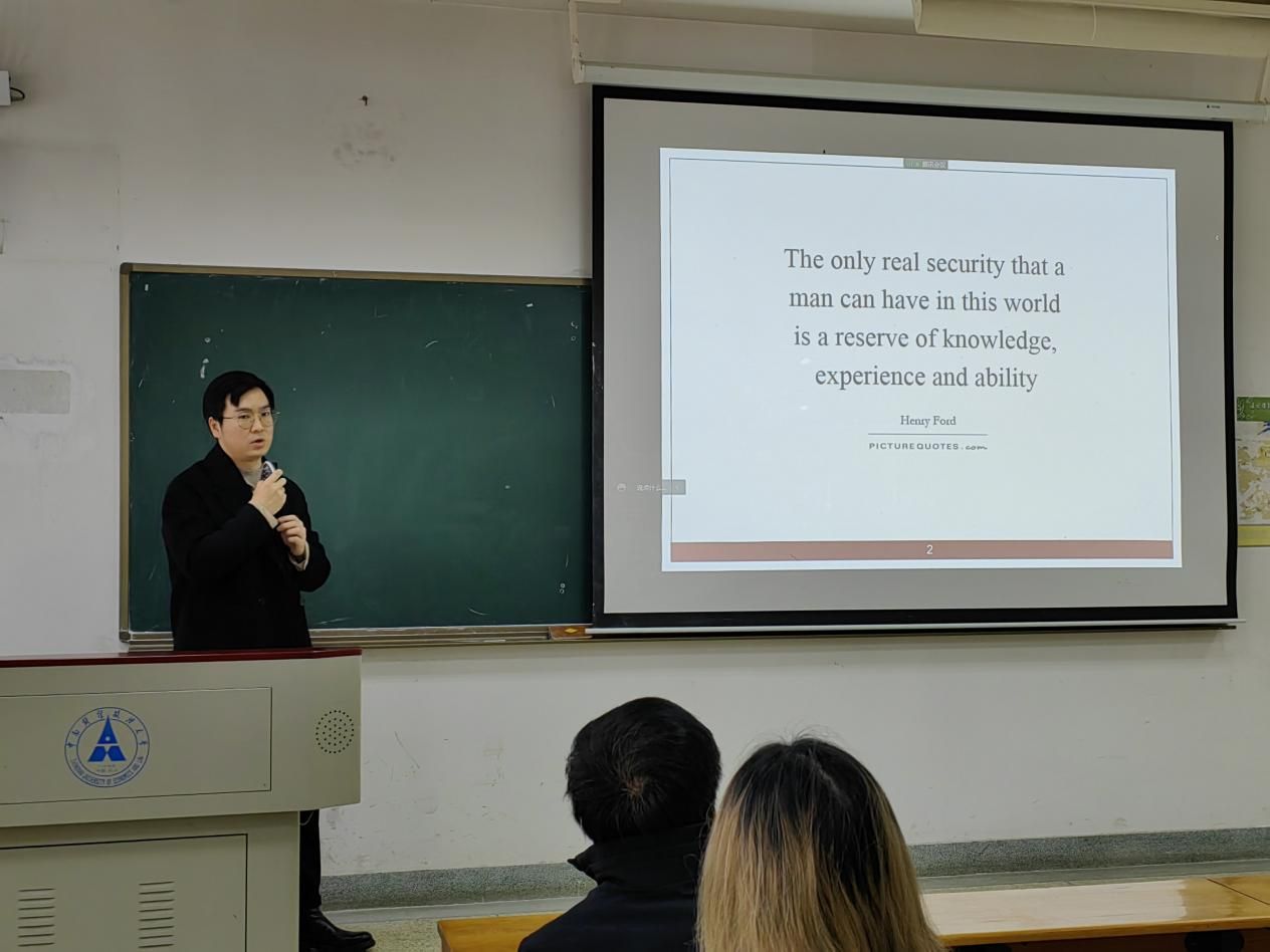数智化创新管理微专业的课程负责人之一毛江华副教授也在开班仪式上表达了自己的观点。毛老师开篇引用了亨利·福特(Henry Ford)的至理名言:“The only real security that a man can have in this world is a reserve of knowledge, experience and ability(人生在世能够拥有的唯一的真正保障来源于知识、经验和能力的储备)”,以此告诫各位同学在数字经济时代要保持终身学习的心态。同时,毛老师也谈了他个人在准备数智化创新管理微专业相关课程时的感受。本微专业课程强调“数智化”特色,加大了授课的难度,但微专业的各位任课老师包括毛老师自己花了一般课程两倍多的时间来备课,只为了让各位微专业的同学们能够真正学有所获。
