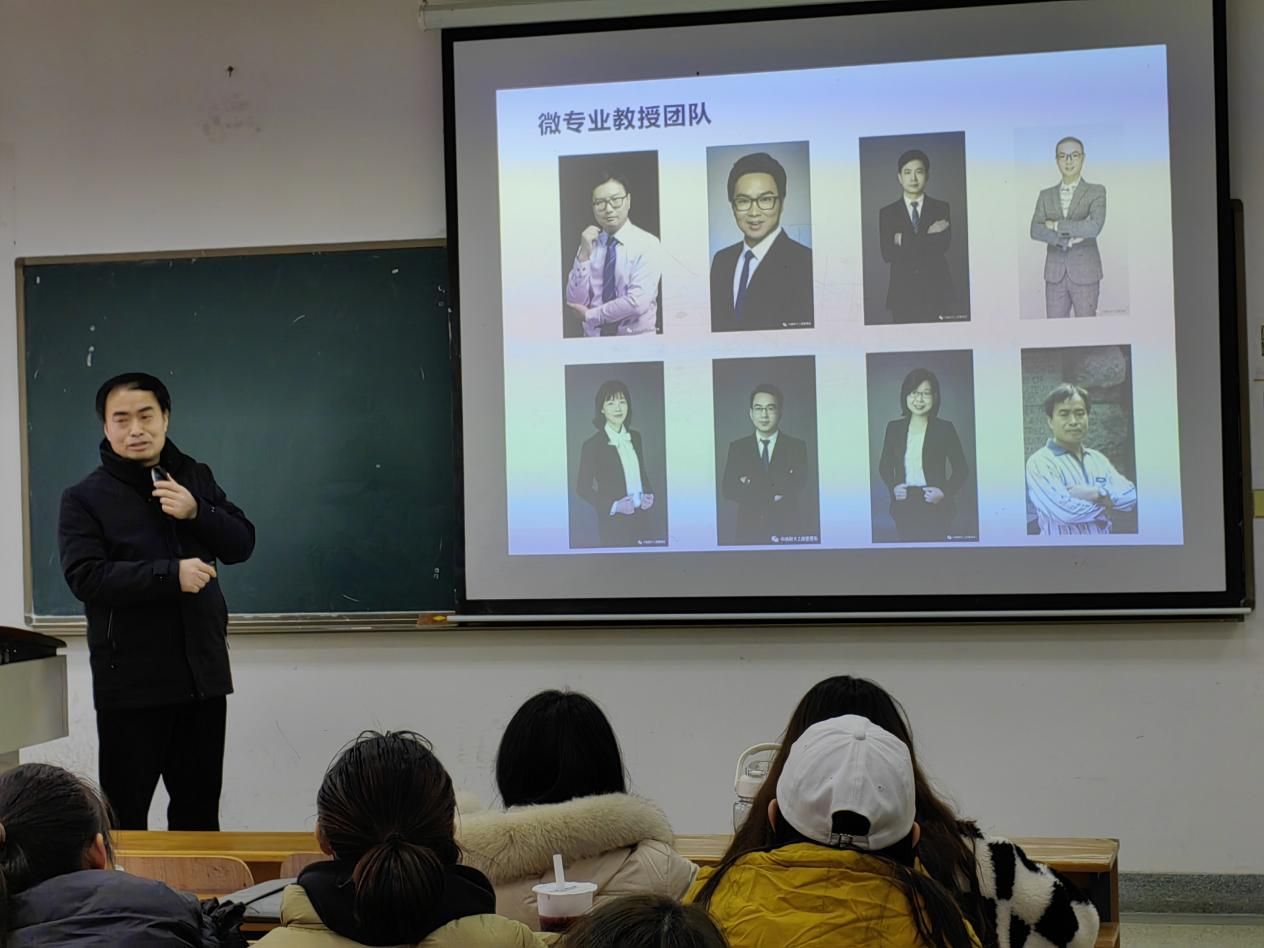 开班仪式上,数智化创新管理微专业负责人石军伟教授对各位同学表示了热烈欢迎,并对本微专业的基本情况进行了全面介绍。首先,石教授向各位同学讲解了“微专业,大未来”,指出数智化创新管理是我校首次获批的三个微专业之一,在座各位同学是本微专业课程的第一批学生,也是第一动力。接着,石教授明确了“微专业,大不同”,从课程方案、课程内容、授课形式、考核方式四大方面说明了数智化创新管理微专业非同一般专业之处。随后,石教授介绍了本微专业团队的基本情况,重点对直接承担本微专业课程教学任务的八位教师(陈方宇副教授、毛江华副教授、万华博士、刘文通博士、张静副教授、吕飞副教授、梅丽霞副教授、石军伟教授)进行了逐一介绍。此外,石教授还进一步明确了数智化创新管理微专业的能力培养目标,即将各位学员培育成“精数字、通智能、善创新、懂管理”的新型复合型人才。