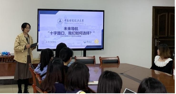 在本次班会中,国贸1901班辅导员何强老师详细介绍了大三学生现在应该对未来人生发展方法进行的准备,并分别从保研、考研、出国和就业四个方向做出了具体分析。