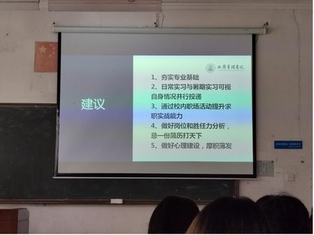 接着,马老师也分别对计划出国出境留学和就业的同学们提出了建议,综合历年数据和往届学生经验,马老师建议同学们要提前做好计划,计划出国出境的同学要积极联络专业人士,准备就业的同学要积极参与实习实践活动提升求职能力。同时,马老师也嘱咐大家要做好心理建设,才能够厚积薄发。