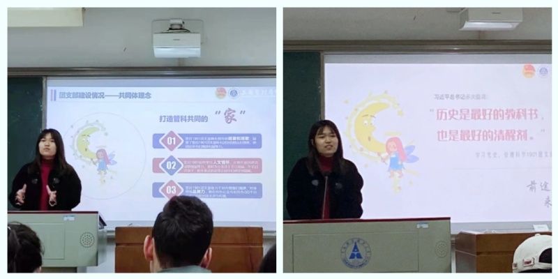 首先,来自管科1901班的干部高晓蕾向21级班团们介绍了管科1901团支部的建设情况以及班级建设经验,涉及到班级活动策划、班级凝聚力建设以及班级宣传等多方面的内容,尤其是在有关如何做好“青年大学习”的问题上获得了21级班团们的热烈反响。