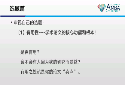 王田老师指出,写学术论文的本质是知识生产的过程,而不是知识搬运的过程,并解答了同学们为什么要写论文的困惑,说明了写论文的重要性。接着,王田老师从有用性、公共性、经验性等八个方面向大家说明了应该如何进行论文选题。在开题篇中,王田老师着重介绍了三大要素:论文选题的意义和创新点、国内外研究综述和评价以及论文总体设计的科学性。