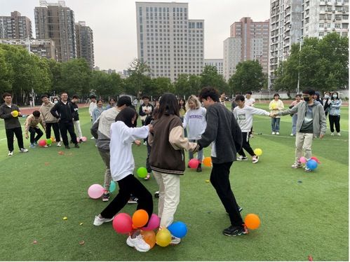 经过短暂热身游戏之后,同学们在主持人的带领下开启了第一项活动——“一站到底”。在这一环节,同学们开动脑筋,争相发言,回答主持人所提出的问题,现场活动气氛活跃开来。之后活动中,同学们陆续体验了两人三足、蒙眼障碍赛以及团队踩气球等一系列有趣的活动。在活动中,同学们逐渐熟悉彼此,将烦恼抛于脑后,酣畅淋漓地体验着户外运动带来的趣味,现场氛围达到了高潮。