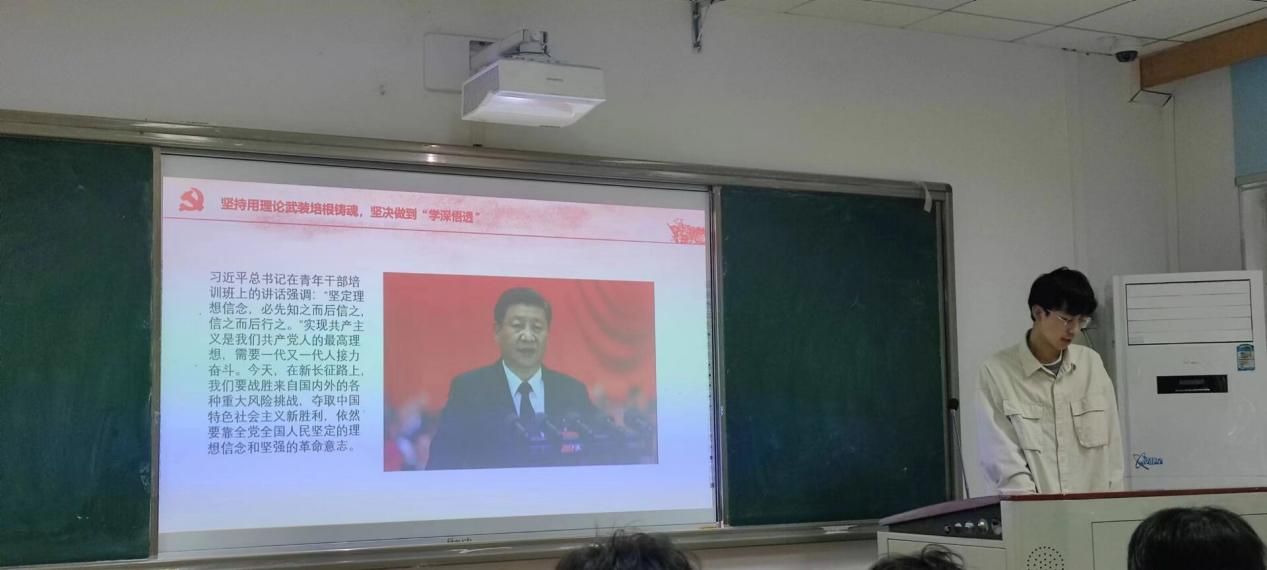 活动的开始,主持人钱蔚向同学们介绍了党的二十大“坚持用政治建设领航青春定向,坚决做到两个维护”的主题内容并带领同学们学习习近平总书记在青年干部培训班上的讲话习近平总书记强调: 坚定理想信念,必先知之而后信之,信之而后行之。 实现共产主义是我们共产党人的最高理想,需要一代又一代人接力奋斗。在习近平总书记的殷殷教导下,同学们更加明确了自己作为新时代青年的使命任务,坚定了始终跟党走的理想方向,积极学习两会精神,贯彻落实二十大精神。