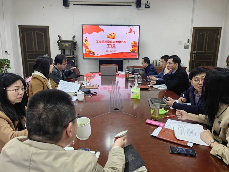 2022年3月17日,工商管理学院党委理论学习中心组在文泉楼北407会议室召开专题学习会,院党委书记王华路主持会议。