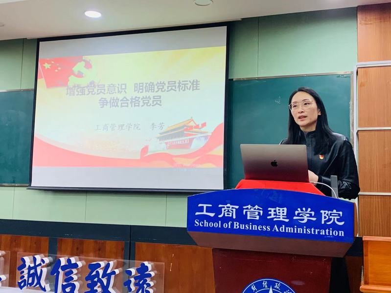 院党委副书记李芳以《增强党员意识 明确党员标准 争做合格党员》为题向入党积极分子讲授了“党员意识培养”“合格党员标准”“党员的‘两学一做’”等内容。她从读懂党员标准谈起,重点解读了党员的“四个意识”,结合青年大学生实际,勉励商学院青年入党积极分子要以合格党员标准的严格要求自己,从“学”和“做”的方面争做一名新时代的有为青年,鼓励大家以实际行动争取早日加入党组织。