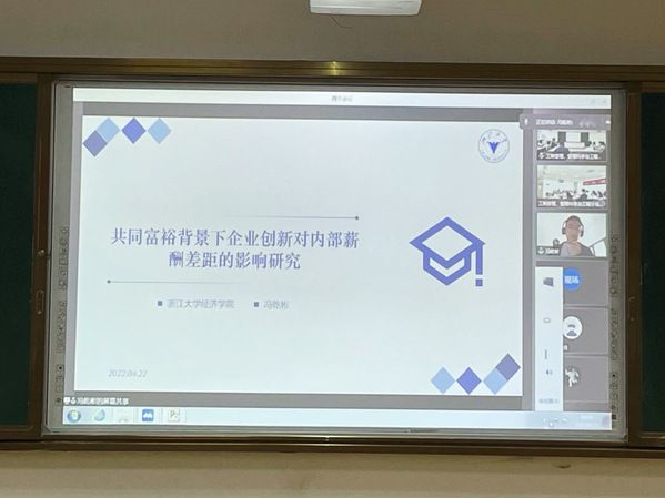 第三位展示的是来自浙江大学经济学院的冯乾彬同学分享了题为《共同富裕背景下企业创新对内部薪酬差距的影响研究》的论文,这篇论文主要通过实证研究分析了企业创新能力和高管-员工薪酬差距的关系,企业创新能力和普通员工内部高低技能劳动力薪酬差距这两方面内容。针对此篇论文,点评嘉宾刘文兴老师认为本文应该要进一步关注创新的不同类型,董慈蔚老师则认为本文理论分析比较深入,但是背景和结论存在脱节,行业、地区的收入差距不仅仅需要考虑技术创新,还应该考虑企业整体创新。