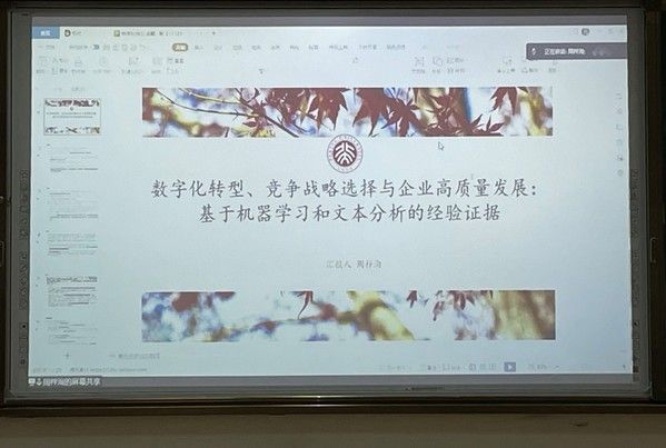 在进行短暂的休息后,由北京大学的周梓洵同学分享了题为《数字化转型、竞争战略选择与企业高质量发展:来自机器学习与文本分析的证据》的论文,本文揭示了企业数字化转型与全要素生产率提升的非线性关系,深化了对企业数字化转型的认识。点评嘉宾董慈蔚老师认为本文十分契合本次文澜论坛的主题,但也存在少许不足,文章中使用的方法有所欠缺,关于现象的解释有待增强;刘文兴老师则认为本文现象描述过多,理论支撑偏少,忽略聚焦战略的战略适配,存在数据驱动的问题。