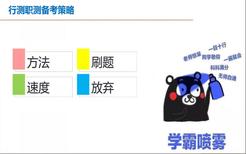 随后,李老师又给同学们详细介绍了各科备考的策略——行测职测备考时要注重方法、刷题、速度以及取舍,要在有限的时间里拿到尽可能多的分数;而写作类备考时则比较注重技巧、练习和平时的积累,需要长期的训练。接着李老师通过具体的题目讲解了图形推理类题目的做题技巧,说明正确解答此类题目的核心就是要掌握特征图。