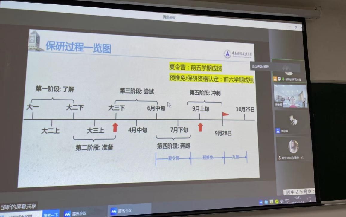 邹昕师姐首先回答了什么是保研,以及介绍了保研的一些时间线问题,让同学们有一个清楚的认识。