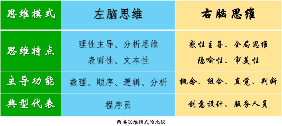 由上可见:传统的左脑思维优势将会被电脑和AI取代,而右脑思维将是AI无法企及的人类独特能力。