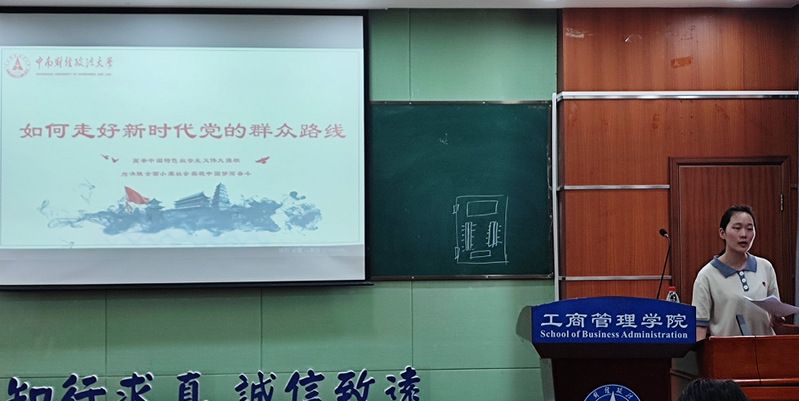 为做好毕业生党员离校教育、进一步强化毕业生党员理想信念教育、爱党爱国爱校教育,引导毕业生党员坚定不移听党话、跟党走,到基层就业,到祖国需要的地方就业,争做堪当民族复兴重任的时代新人。2022年6月15日,本科生2018级第一、第二、第三党支部在文泉北506会议室开展“师生同讲微党课”联合主题党日活动。此次活动邀请到驻红石村工作服务队成员曾洁老师授课,工商管理学院本科生2018级全体学生党员参加学习,学生党员杨柯宁担任主持人。