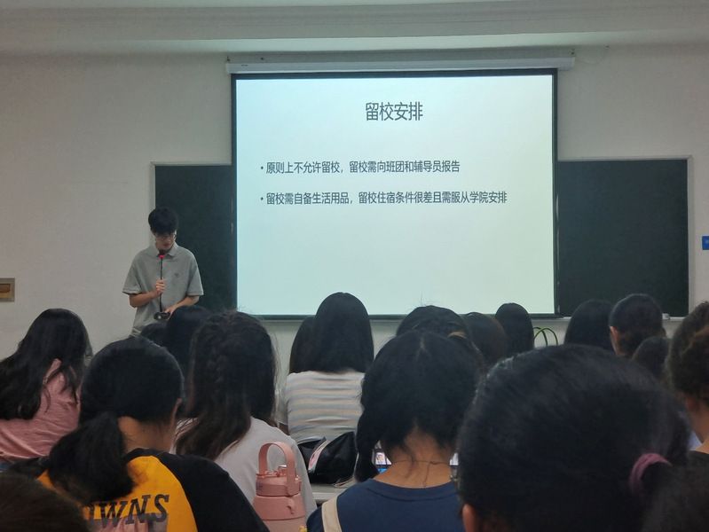 首先,班级辅导员杨思琦老师在各班依次作本学期各项事务总结与期末注意事项提醒,教导同学们对于即将到来的期末考试应积极备考、诚信应考,对同学们的期末考试寄予了厚望。同时,对于下学期的搬家搬校区事务,杨思琦老师也阐明了搬校区工作的相关内容,提醒同学们要做好相关工作。除此以外,杨思琦老师也强调,在即将到来的暑假假期中,同学们应当注意假期安全,合理分配时间,度过一个安全、充实、有意义的假期。