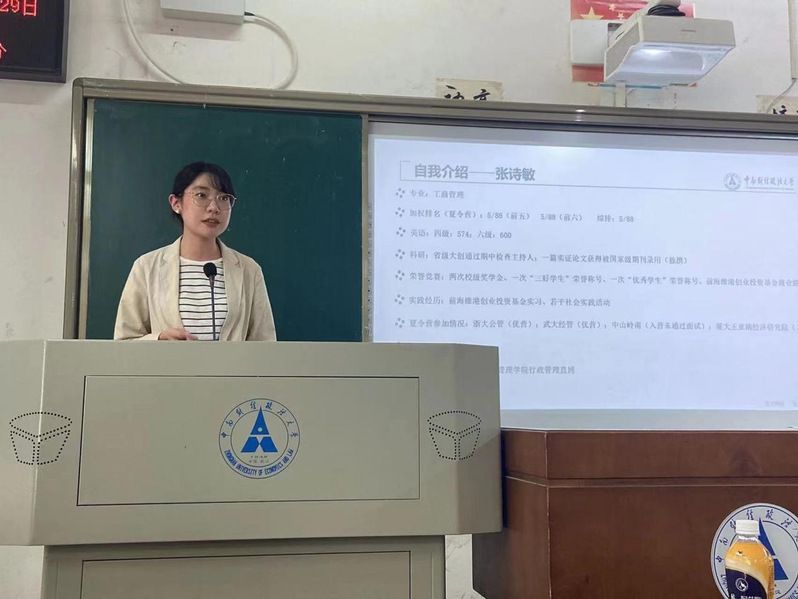 接着,由工商1901班的张诗敏师姐为大家介绍工商管理专业保研方面的经验。张诗敏师姐参加了浙江大学、武汉大学、中山大学、厦门大学等多所高校的夏令营活动,最终成功推免至浙江大学公共管理学院。针对工商管理专业的保研情况,张诗敏师姐为师弟师妹们作了详细的讲解。张诗敏师姐讲到,我校工商管理专业本科生保研去向多为985、211平台;并提醒大家保研的捷径就是学好必修课,提高绩点与综排,并积极参与科研竞赛,提升个人综合能力,利用一切资源提升自我的学习能力。