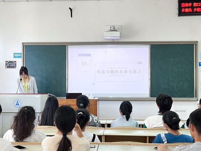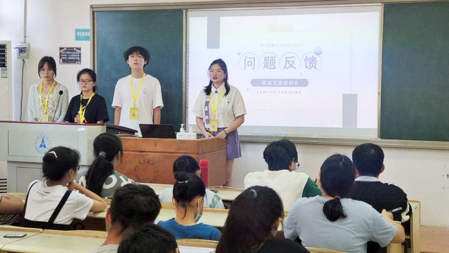 最后,各班班级代表发言。同学们就会议内容提出疑问以及生活与权益方面的建议,杨倩、李锐玲、杨诗棋与余雷对各班班级代表提出的问题进行了详细的回答,解决了同学们在查寝标准、寝室设施、学生之家设施等方面的疑问,并对暂时无法解决的问题进行了记录,并在培训会结束后向校级部门提交提案,及时反馈。