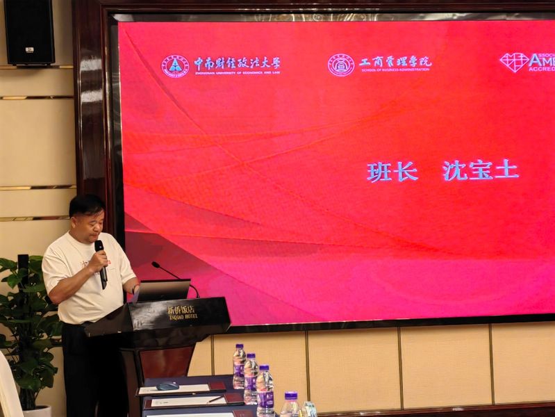 班长沈宝土(中港集团董事长)首先发言,表示感恩学校,感恩学院,给班级同学带了一段非常美好的经历;感恩遇到班主任胡老师;感恩遇见班上所有的同学。多年后再回学校读书,EMBA这段学习经历在工作中起到了非常重要的作用,企业也得到蓬勃的发展。班集体有如此的凝聚力得益于胡老师的领导有方,期待下一个十年、二十年、三十年,我们依旧在一起,不见不散。