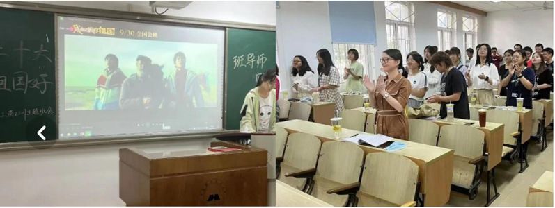 “如果信念有颜色,那一定是中国红!”其中,工商2202班、工商2203班、工商2204班、工商2208班、经贸2202班、旅管2201班同学均自发穿上了统一的文化衫开展班会活动,用最美丽的颜色深情告白伟大的祖国。
