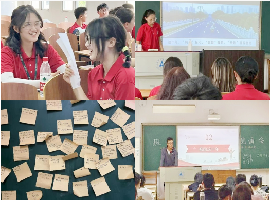 在“祖国这十年”、“我眼中的祖国”等讨论活动上,大家共同回首了祖国这十年的风雨兼程,领略了祖国的大好河山。不忘来时峥嵘路,共绘盛世山河图,同学们积极发言,畅谈心中所想,与国同梦,共同奋进!其中,工商2207班、工商2208班学子以纸笔为媒介,抒怀了心中美好祝愿。他们写道:“祝祖国母亲繁荣昌盛,国泰民安!”、“无古不成今,作为年轻一代,不能忘记为什么出发,用双脚去丈量土地,拥抱我的祖国,生日快乐!”