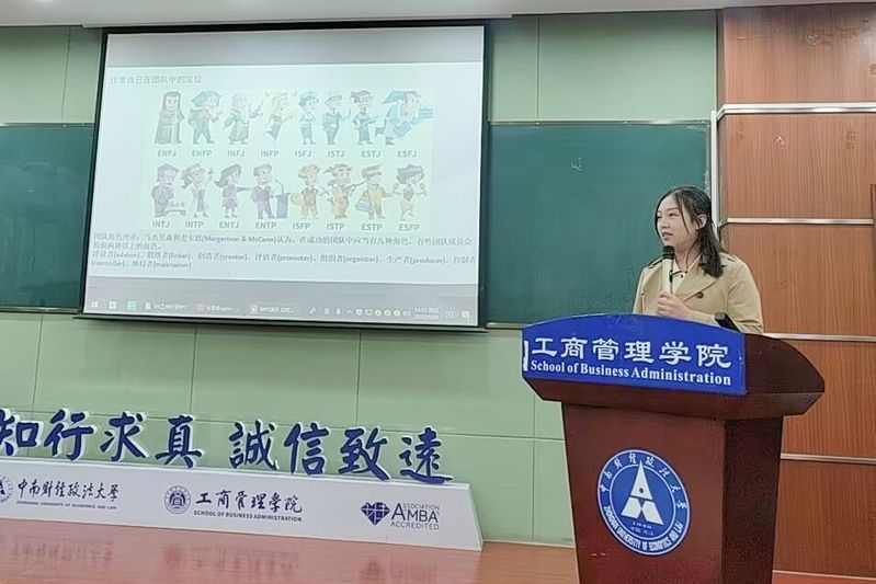 接下来,母棱师姐分享她的团队参加挑战杯的作品,并建议大家在团队中找到自己定位与优势,她指出,在一个团队当中,每个成员应该找到自己扮演的角色并去履行职责,这样团队合作才可以达到最大效率。并指出创赛只是一个起点,它最终还是与专业学习紧密结合,不断锻炼自己的能力,扩充自己的知识和能力体系。