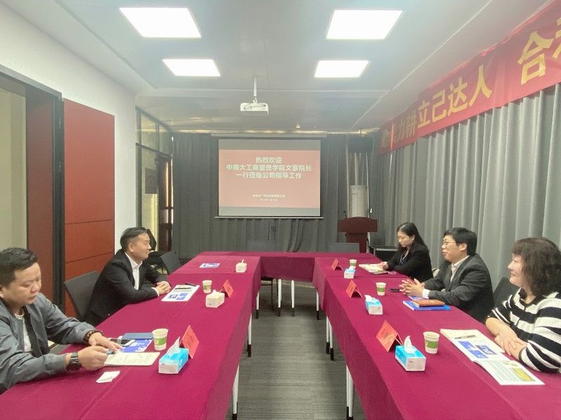 2022年10月12日下午,我院副院长兼MBA中心副主任文豪教授、MBA中心王艳明老师、熊敏老师一行前往MBA校友企业湖北金广农业科技有限公司走访调研,并与湖北金广农业科技有限公司董事长,MBA2007级校友高雪刚关于校企合作等相关事宜进行了广泛深入的交流。出席交流会的有湖北金广农业科技有限公司执行总经理张杰。