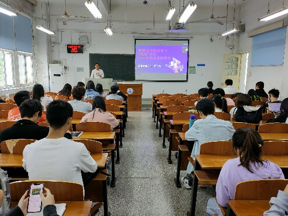 讲座伊始,付老师开门见山向同学们介绍了营销在企业中的地位。“营销最重要,是核心岗位”直截了当地向同学们强调了营销知识的重要作用和巨大的实用性,在此过程中许多同学对营销的看法有了巨大的改变。紧接着,通过对营销岗位晋升通道的梳理以及诸多知名人士的事迹举例,付老师为同学们深入浅出地分析了修习营销专业的光明前景,付老师的分析引得许多同学对营销专业刮目相看。