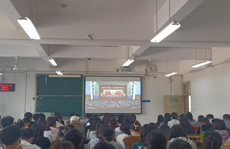 (通讯员 刘益冰 王自佳)2022年10月16日,举世瞩目的中国共产党第二十次全国代表大会在北京人民大会堂隆重开幕。工商管理学院研究生党总支在文添楼203教室集中组织收看党的第二十次全国代表大会开幕会现场直播。辅导员江为民老师、学院各研究生党支部全体委员、发展对象和入党积极分子代表参加。
