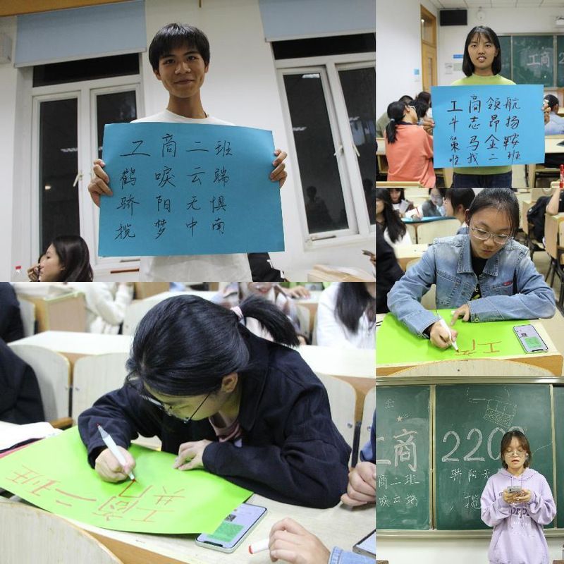 随后是“共想班呼”环节,同学们以小组为单位设计班级口号。大家讨论得热火朝天,积极地为班级口号贡献自己的智慧,表现出极强的集体荣誉感和责任意识。最终“工商二班,鹤立云端。骄阳无惧,揽梦中南”高票当选。大家心怀激动与欣喜地喊出了班级口号,并在许嘉琪同学领唱下一起合唱班歌《开心往前飞》