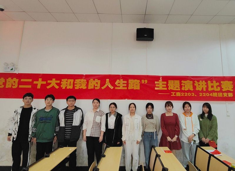 21日上午,工商2203班团支部联合工商2204班团支部在首义校区30号楼102教室开展团日活动第一项:“党的二十大和我的人生路”主题演讲比赛。