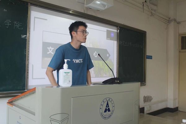 学术科研中心主任魏泽宇同学发言。魏泽宇同学简要介绍了学术科研中心的主要职能工作,并进一步对学术科研中心参与举办的学术文化活动以及学术科研讲座进行了详细的讲解,同时强调了遵循讲座审批流程的重要性,从自身的举办活动的经历出发,对线上讲座举办过程中容易出现的问题进行了总结,为学术科研中心的工作推进打下基础,希望学术科研中心能够在接下来的工作中加强与各部门之间的对接。