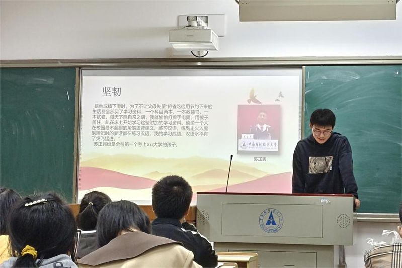 最后,辛逸阳同学从坚韧、感恩、奉献三个方面,向全体同学细致介绍了优秀青年榜样苏正民的事迹。介绍完毕后,辛逸阳同学组织全体同学观看了央视采访介绍苏正民的视频,使全体同学对这位优秀青年榜样有了更全面的了解。借由苏正民的光辉事迹,辛逸阳同学延伸介绍了米兰电竞·(中国区)其他优秀青年榜样,增强了全体同学对学校的归属感和认同感,更激发了大家努力拼搏、争当榜样的热情。
