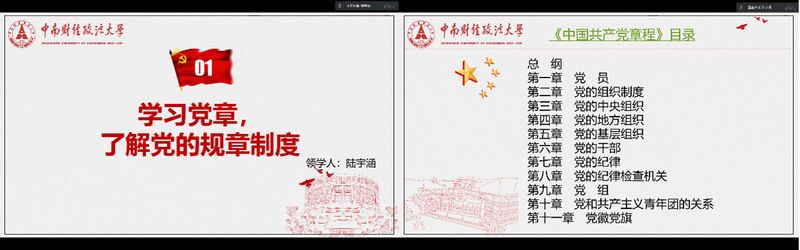 领学人陆宇涵带领2022级全体入党积极分子学习《中国共产党章程》,本次党章学习诵读了总纲中的部分内容。党章是党的根本大法,是立党、管党、治党的总章程,是全党必须遵循的总规矩。学习党章是每一位党员的责任和义务,学习好党章才能更好地践行党章。
