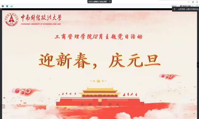 (通讯员 张昕宇)2022年12月31日早上,工商管理学院本科2022级党支部在线上召开以“学习践行新党章,学深悟透二十大”为主题的党日学习活动,支部书记水晶晶老师、支部副书记刘振兴老师及65名入党积极分子参与学习。