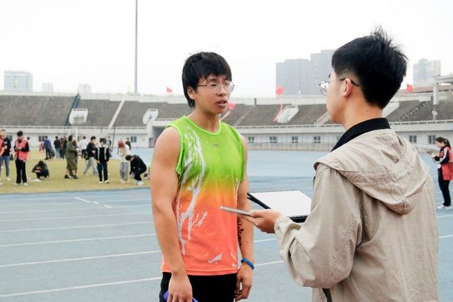 怀揣对运动的热爱与自我突破的决心,她选择了女子铅球项目。她告诉我们和比赛相比,平时训练的挑战性会低一点,也会偏平淡一点,正因如此,平常训练的坚持不懈才显得更加可贵。最后,她向志愿者与支持她的同学们表达了由衷的感谢。