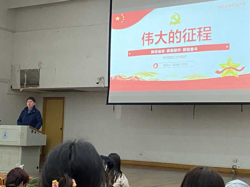 尼加提老师以党的二十大精神为核心,分享了题为“用实践和理论触摸祖国的中国式现代化脉搏”的讲话。在讲话中,尼加提老师结合自身在呼伦贝尔开展调研的实践经历,从自己的所见所感出发,带领我们领略了祖国农牧业的现代化发展、人民生活水平的提高、经济水平的快速发展以及中国式现代化的加快建设,深入浅出地为我们讲解了党的二十大精神中的深刻内涵,深入分析了全面建成社会主义现代化强国的重要战略安排和未来将面临的机遇和挑战。同时将党的二十大精神与我们的专业学习相结合,鼓励我们积极把握大学时光,领略祖国的风采,在实践中去感知祖国的中国式现代化,将我们所学的知识和理论与实践深度融合,践行党的二十大精神。