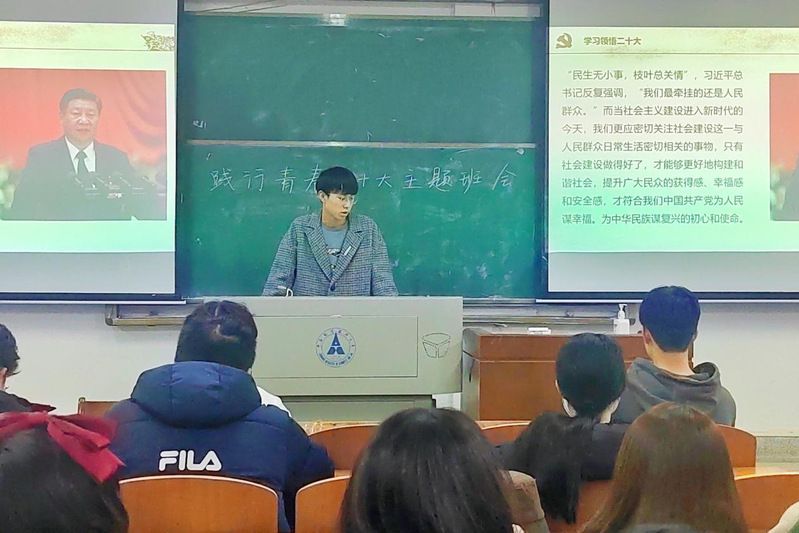 通讯员旷自然2023223国贸实验2101班会于南湖校区文澜楼110教室举行本次活动由班长朱一清主持召开辅导员杨思琦老师出席本次班会此次会议的主要目的是学习二十大精神做好对自我的规划