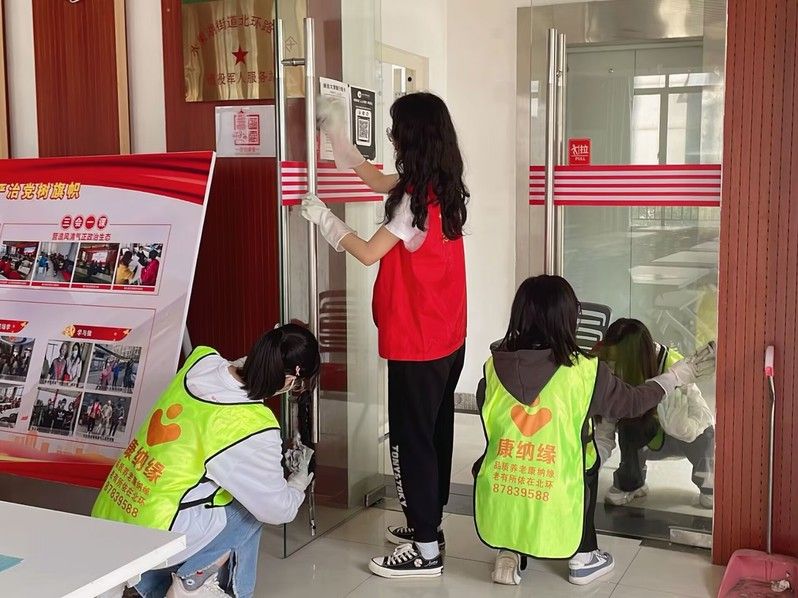 躬行为长者折枝,“雷锋”展身手。活动过程中,考虑到老人们行动不便,志愿者们热情地帮助老人完成家中的清洁工作。其中一组志愿者站在桌子高处,为老人擦拭年久积灰的风扇,另有一组志愿者耐心拆卸,帮助老人清洗拼装复杂的家具摆件。除此之外,志愿者们还不辞劳苦地为老人们清扫地面、擦拭屋内高处的玻璃、清洗卫生间的边边角角等。