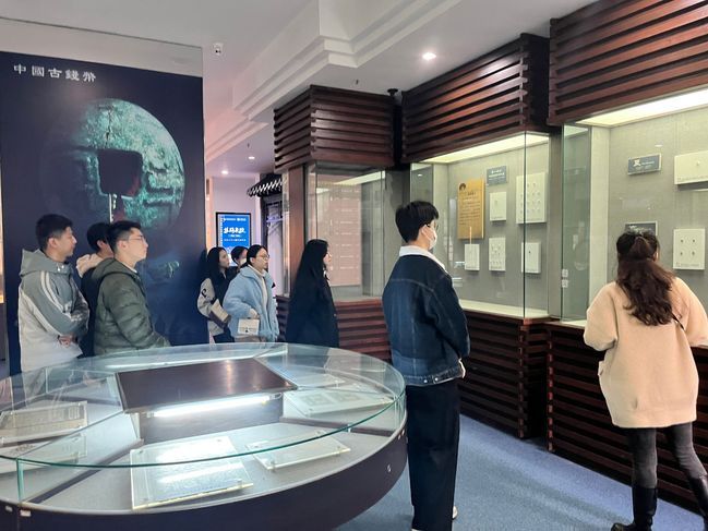 下午2:30,在讲解员的带领下,两院新发展团员有序步入中国货币金融历史博物馆。博物馆内装潢整洁、复古雅致,陈列了自古代至现代中国的4000余件货币、票据、借贷契约实物原件和金融史料,藏品极其丰富、精美,生动反映了我国货币演变的历史进程,令人目不暇接、大开眼界。在讲解员深入浅出、热情专业的讲解中,同学们边走边看,不时驻足,对藏品展现出极大的兴趣。