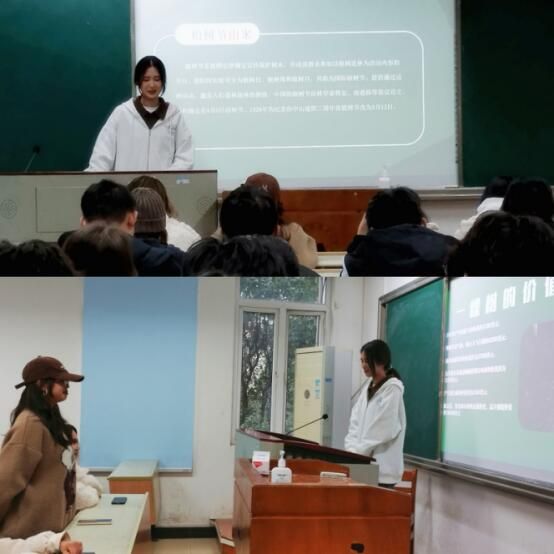 为了培育学生创新思维,提高双新实践能力,徐丽蓉同学以第九届“明理杯”大学生创新创业竞赛为例,向同学们介绍了竞赛的基本内容和主要组别,增进了同学们对竞赛的了解,激发了同学们参与竞赛的热情,鼓励同学们成为勇立时代潮头的新青年。