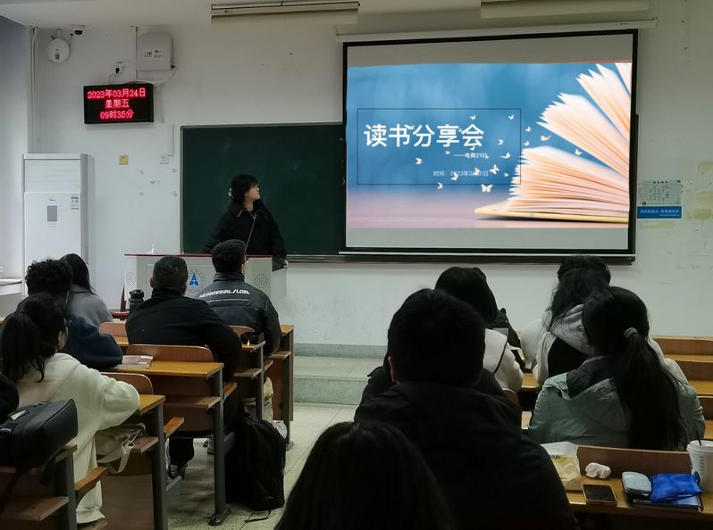 本次主题班会分为两个部分,首先,由班级的学习委员孟周洋同学为大家分享了个人大学期间的学习经验;第二个部分为好书分享环节,多名同学上台分享了自己读过的书籍以及推荐的原因。