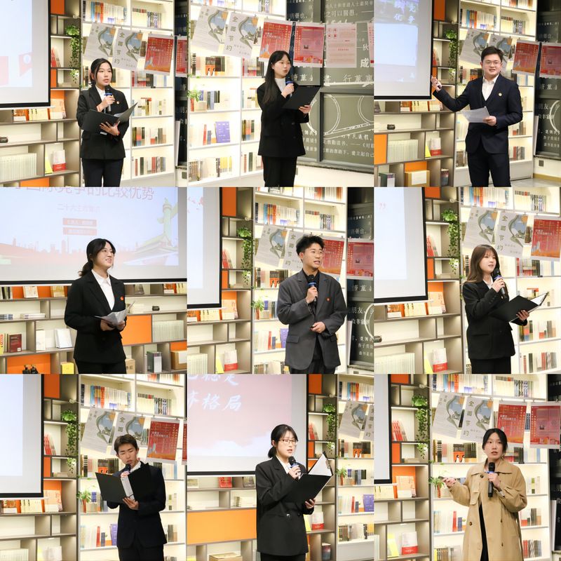 各个班级挖掘党的二十大关键词,结合自身的专业特色、专业知识讲述新时代青年应该怎样站在自己的位置上,为中国式现代化贡献出自己的青春力量,表现新时代中南商科青年的刚健自信、胸怀天下、担当有为。