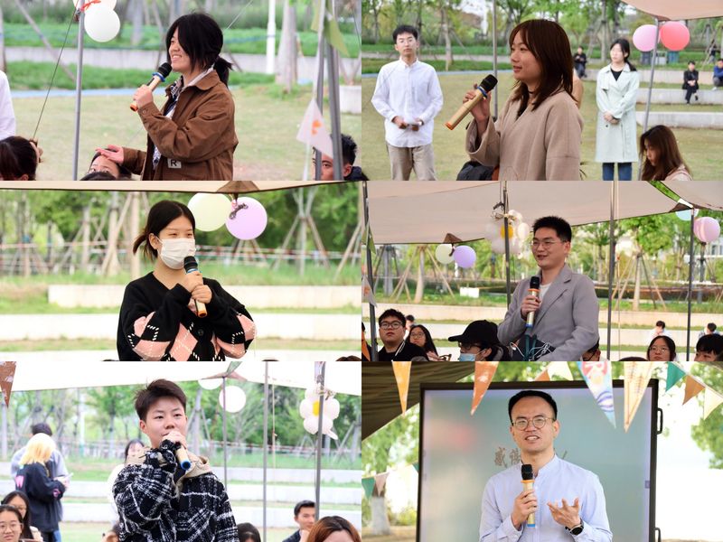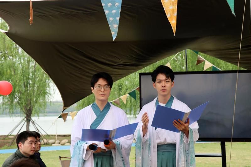 南湖畔,春风里。草坪书会在鲍菘涛、朱思聪同学带来的诗词吟诵《春江花月夜》中拉开序幕。两位同学身着长衫,化身古人,以词会友,以诵传情,带领在座嘉宾老师与同学徜徉于千百年前的明月摇情之夜。