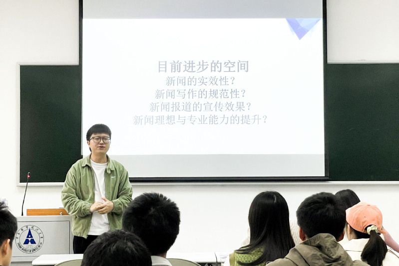 何老师首先向各位学员进行简短的自我介绍,并指出宣传工作的重要性与相关部门学习校园新闻采访写作基本规范的必要性。