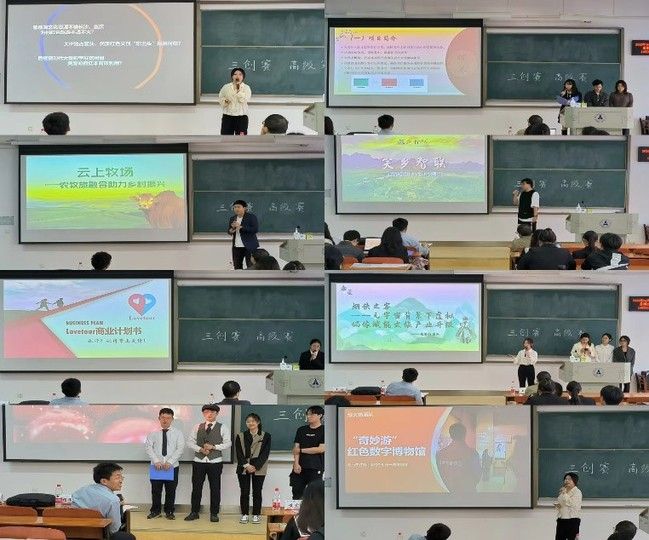 在本次路演中,各个团队的展示选手准备充分,PPT制作精美,创业项目亮点纷呈。三创我要从答应团队的“时食养”为老年人量身定制的食疗平台,智乡笑联团队的“笑乡智联-乡遇:有情怀的数商兴农服务商”平台,云阁团队的“烟侠之客-元宇宙背景下虚拟偶像赋能文旅产业升级”项目,豫火燎原队的“豫火燎原-多功能红色数字博物馆”,果臻团队的与云南省农业科学院合作、与车厘子为核心的“云樱”项目,财大专业团队的“Lovetour-智能规划路线个性出游的伴侣旅行小程序”,碳探小分队致力于互联网+环保回收的“碳探森林”,金牛有作为队带来的“云上牧场-农牧旅融合助力乡村振兴”项目,共计八个创新创业项目进行了详细展示。项目展演精彩纷呈,加深了同学们对创新创业项目选题方向、开展方式、推进方法等方面的认识,拓展了同学们对商业运营模式的了解。各组展示完毕后,嘉宾老师们对每一支团队进行了针对性的评价与指导,指出目前项目中存在的不足,提出改进或完善方法。助力项目进一步优化,以求获得未来的长期运营和发展。