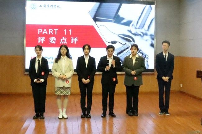 最后进入颁奖环节。经过选手们激烈角逐,综合评委们的打分,吴玲慧获得一等奖,张钰瑶获得二等奖,李昕彤获得三等奖,沈吉杭、谢晓燕和罗志涛三位选手获得优胜奖。由学院何强、刘振兴、杨思琦老师分别为各位获奖选手颁发证书,并送上由国贸股份提供的精美奖品和希音为各位选手准备的文创礼盒。赛后,评委、嘉宾与选手合影留念。
